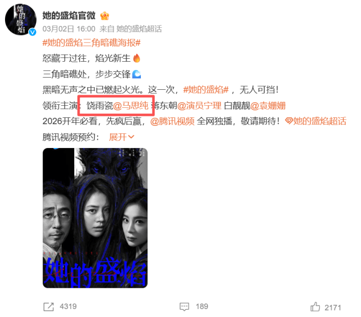本年待播剧 《她的盛焰》中,她演出数学天才饶雨瓷。