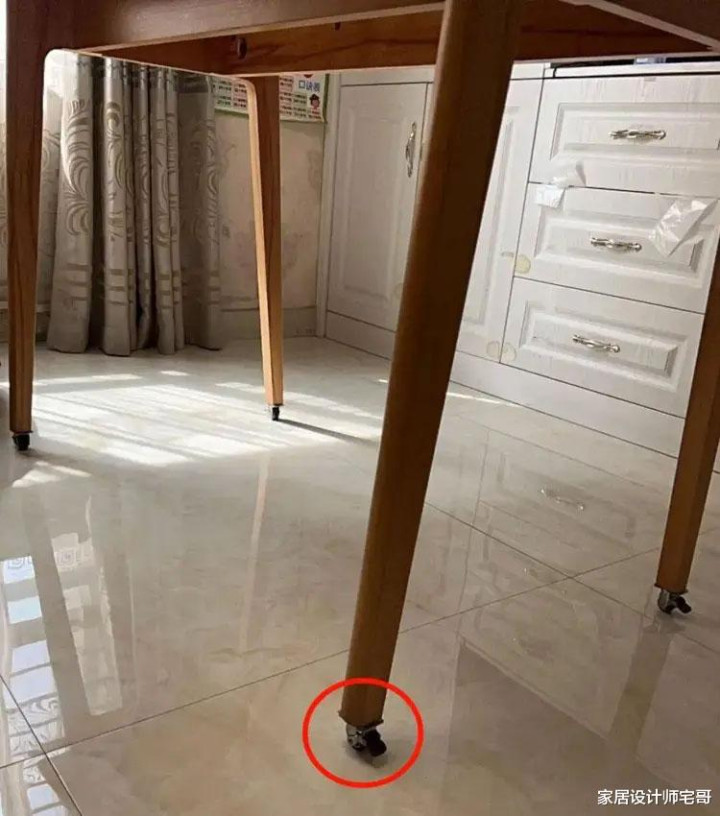 给餐桌腿装上静音轮,是个可以的聘请,需要时拉近沙发,想换布局时猖獗出动,空间更有弹性。