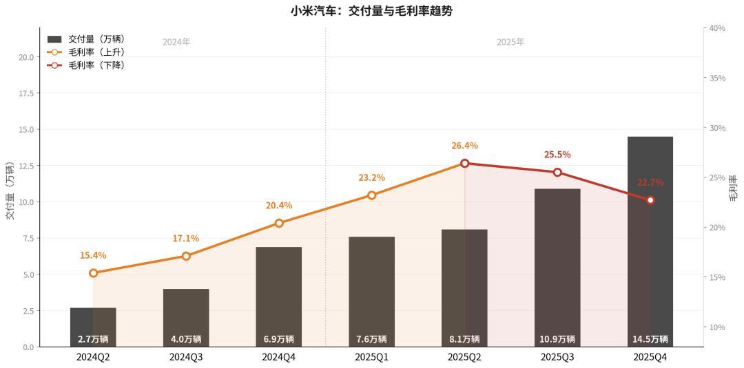 咱们以2025年Q4为例,来拆解小米汽车的“单车账本”。