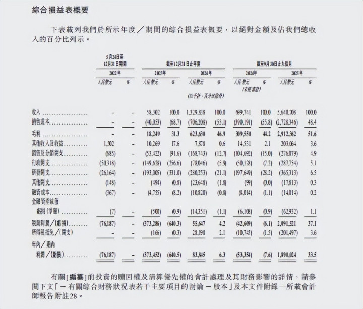 盈利方面,公司在2022年和2023 年净吃亏分裂达到 7620 万元和 3.735 亿元后,但在2024 年便奏效结束盈利,净利润达8380万元。2025年前九个月净利润更是高达18.9 亿元,净利率攀升至 33.5%,盈利智商结束质的飞跃,这也为其第三次冲击港股奠定了坚实的基础。