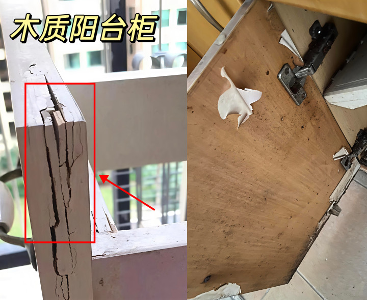 千万别装∶木质阳台柜,怕晒怕潮,太阳一晒容易开裂、变形、恒久晒还会翘边;遇水受潮就发霉、饱读包,板材发胀坏掉;后期维修、更换皆用钱。