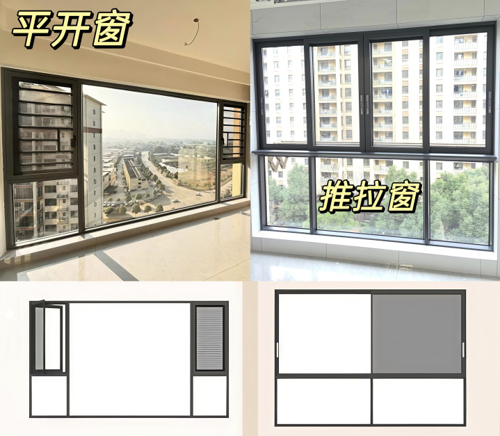 听劝就选∶平开窗/推拉窗,念念要大玻璃就认准平开窗,密封性强,隔音、防风遵守好,念念要更好的透风就认准推拉窗,透风机动,念念开多打开多大;但一定要选质料很好的,有些劣质推拉窗如实存在漏水漏风。