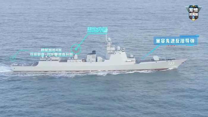 雷达更全面,能远距离发现隐身飞机;装上了“智能大脑”,能快速处理海量信息,优选高危接头;能和卫星、潜艇、飞机高效分享信息,深度融入远海作战体系。