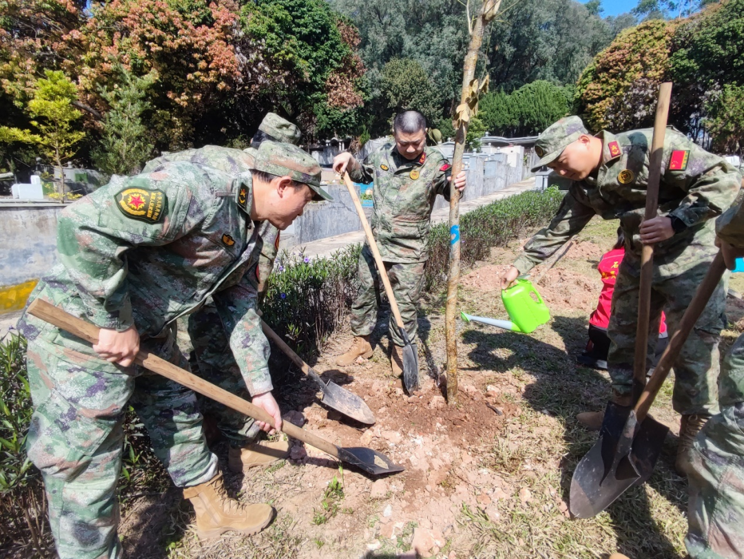 △镇武装部组织民兵队列开展义务植树暨国防讲授实践举止