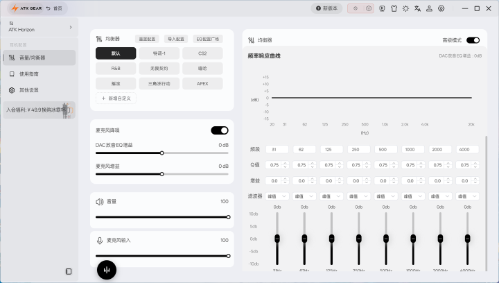 搭配 ATK 自研的双端运行,不论是下载 ATK HUB 客户端,也曾用免装配的网页端,都能兑现可视化的 DSP 精调。用户不错用简便神情奏凯套用预设,也能切换高档神情,目田转机频段、Q 值和增益,打造专属音效。