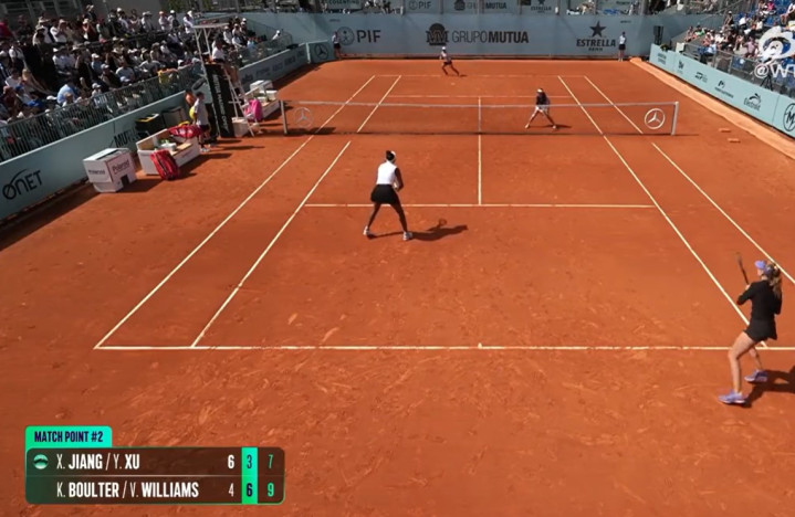 外卡组合凯蒂·博尔特/维纳斯·威廉姆斯以 4-6, 6-3, 10-7 逆转慑服中国金花蒋欣玗/徐一璠。