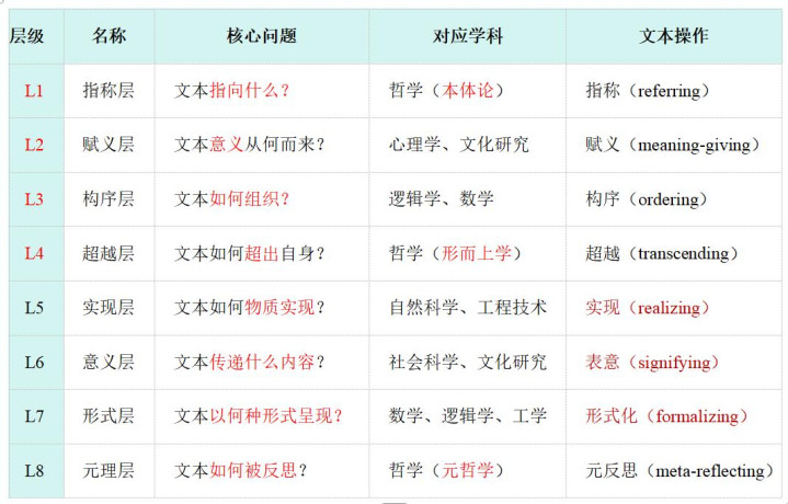 这八个层级并非线性规定,而是组成一个“文本存在的多维鸠集”:
