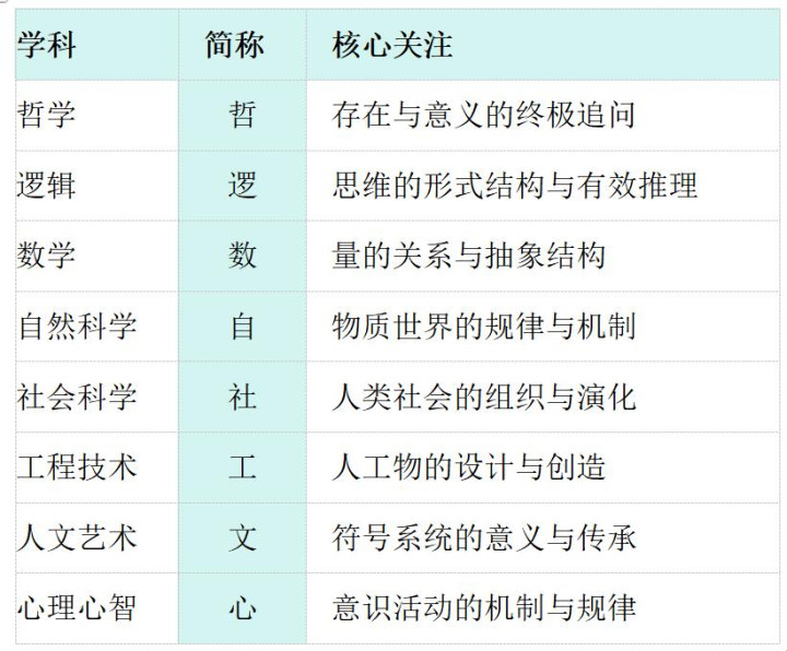 这“哲逻数自社工文心”八大学问体系各种型顶级学科并非浅薄的拼盘,而是组成一个“知道光谱”——从最抽象的玄学追问到最具体的格式机制,涵盖了东谈主类贯通寰宇的所有维度。任何完整的学问体系而非只是只是玄学或科学表面,都应省略在八大学问中找到我方的位置,并与其他学问酿成“互镜”关连。