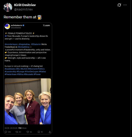 他还张贴了一张欧盟委员会主席冯德莱恩和欧盟搪塞与安全计谋高等代表卡拉斯等东说念主“同框”像片。“在加油站时,真钱投注要牢记这些东说念主。”他写说念。