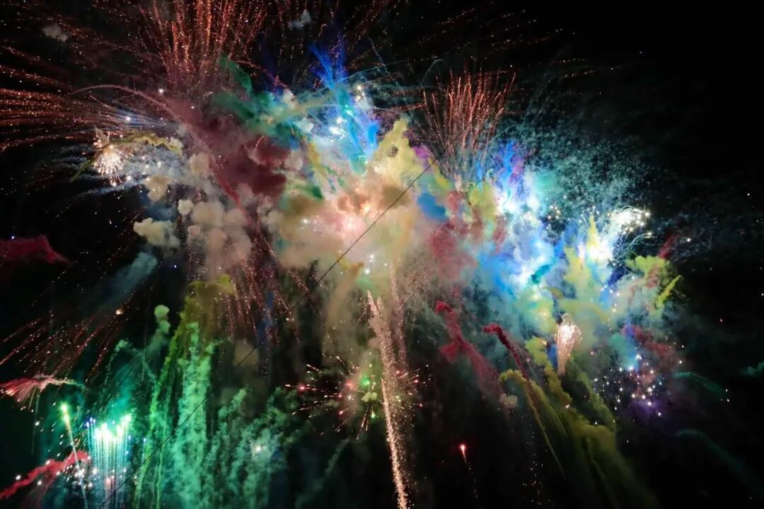 当鞭炮奏凯引燃彩门,绚丽人烟顷刻间怒放,彩门旋转流光、熠熠生辉,将所有这个词这个词屯子照耀得灯火通后,现场喜庆报怨推向上升。彩门燃放终了,广场对面紧接着献技秀气烟花秀,氛围感再次拉满。