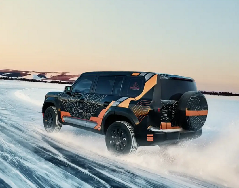 前脸部分瞻望为阻滞式缠绵,两侧前大灯组旁配有纵向摆设的三颗白昼行车灯。车身侧面不错看到宽大的外抛轮眉、AT越野轮胎、侧踏板以及悬浮式外后视镜。机械式门把手与车身名义皆平,使侧面线条更显规整。