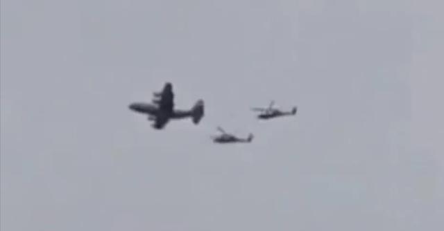 两架黑鹰直升机和一架低空翱游的加油机被拍到正在搜寻失散翱游员。